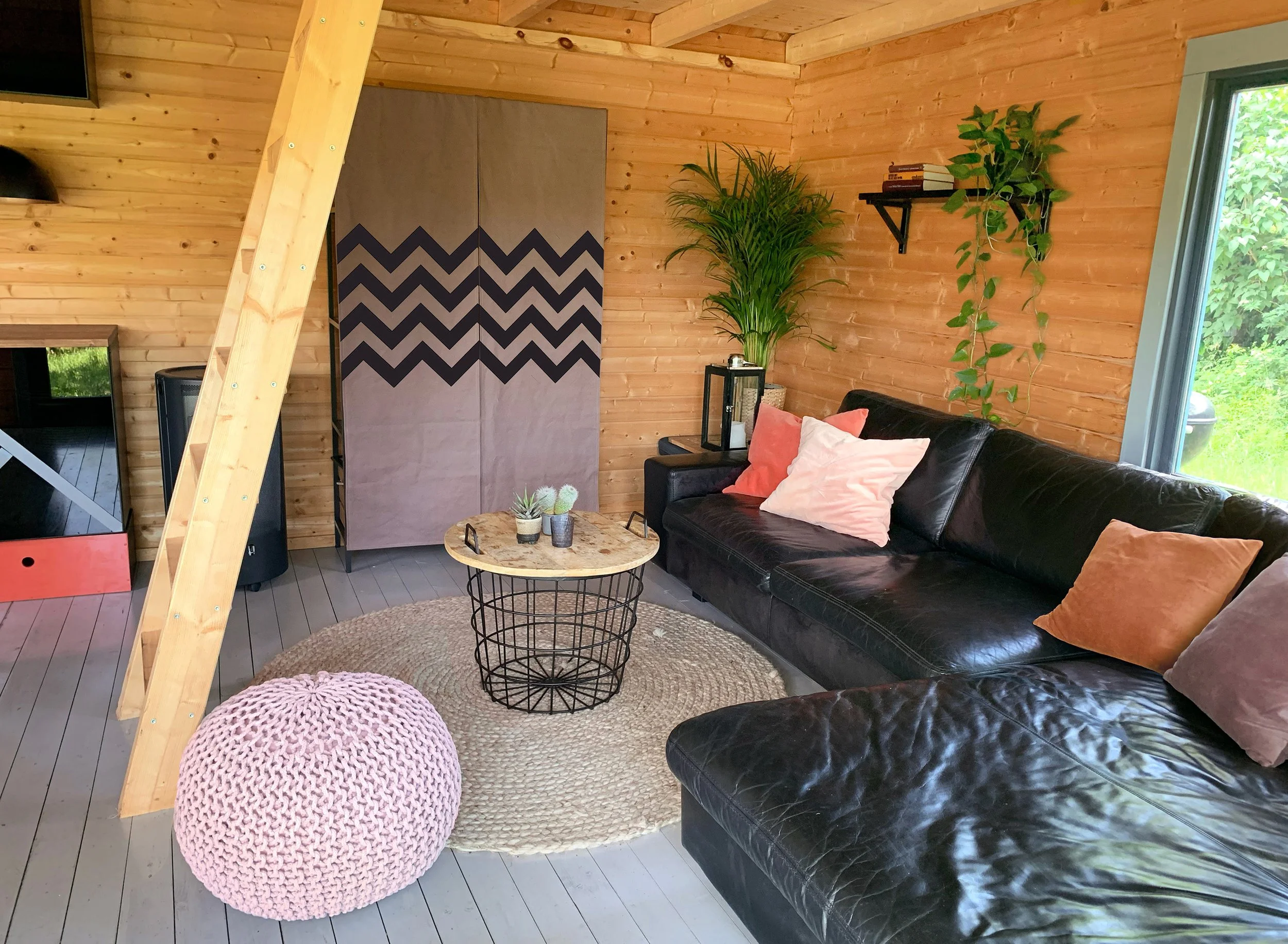 Die 21 m² große Blockbohlenhütte ist bereits zehn Jahre alt und sollte einmal komplett neu eingerichtet werden, mit dem Ziel, das Maximum an Komfort und Style herauszuholen.
